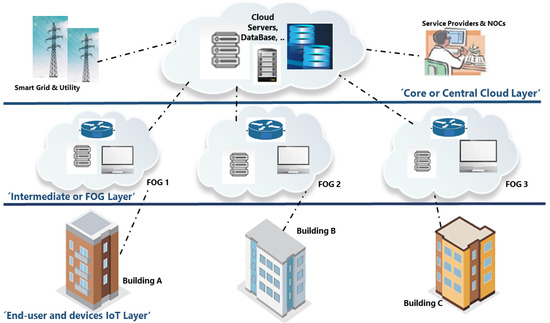 This study concludes that, in the case of a federation or a group of Smart Buildings, the strategy of using Fog Computing with IoT devices of the three types mentioned as (1) to (3) in