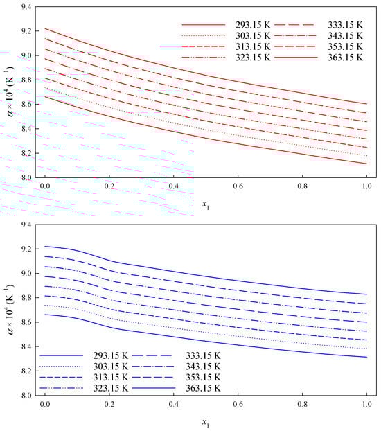 The isobaric expansion coefficient was calculated according to Equation (5):