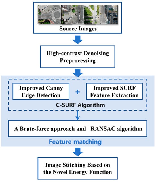 To address this limitation, this paper proposes an algorithm that combines an improved Canny edge detection algorithm with an enhanced SURF algorithm, referred to as the C-SURF algorithm. The C-SURF algorithm not only improves the quality of image feature extraction but also increases the accuracy of feature matching. The specific implementation steps of the algorithm are as follows: