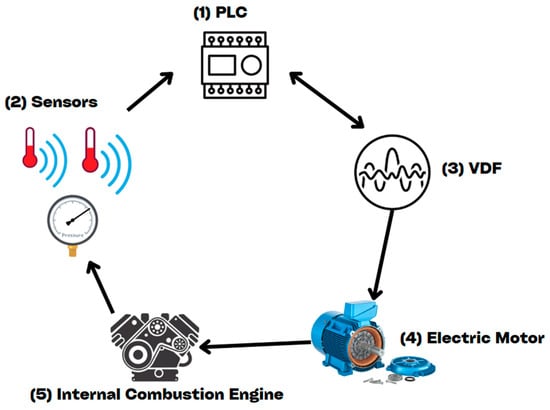 At this stage, an exhaustive analysis of the signals that are currently monitored in the engine was carried out, to preserve the essence of the experiment and guarantee correct sensorization. A real-time communication system was implemented between the sensors and Unity, the platform used for the development of the virtual environment [,,,]. This process was divided into three phases: (1) analysis and correct sensorization of the engine; (2) effective real-time communication between the signals and a server; (3) implementation of the real-time signals in a multi-user environment.