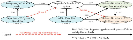 4.2. Impact of Trust on Dispatchers’ Behavioral Responses