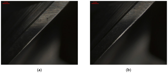 Under lower cutting conditions (Set 1), the cutting force and heat generated during the milling processes are relatively low, resulting in less plastic deformation and thermal stresses on the workpiece surface. Therefore, under these circumstances, the workpiece exhibits higher surface finish and lower surface roughness. Moreover, tool wear, chip adhesion, and machined surface scratches caused by secondary cutting may be reduced with these machining parameters, resulting in further enhancement of surface quality. In contrast, under higher cutting conditions (Set 2), larger cutting force and heat are generated during the milling processes, leading to greater plastic deformation and thermal stresses on the workpiece surface. Under these high stresses and temperature conditions, the chips easily tend to adhere to the cutting tool face which in turn scratches the machined surface resulting in greater surface roughness and poorer surface finish as indicated by the red boxes in Figure 17c and Figure 19a.