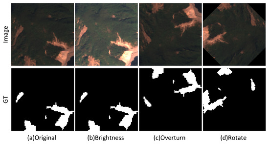 To prevent overfitting and further improve the generalization ability, as well as enhance the model’s robustness in practical applications, we employed the same data augmentation techniques as that used for the base model’s dataset. To maintain consistency, the resolution of the training dataset was adjusted to 256 × 256, and the same augmentation parameters were applied. This process resulted in the creation of the target model’s dataset, termed Landslide-Expand.