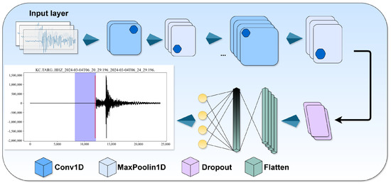 Table 2. The model consists of a sequence of four convolutional layers (Conv1D), each performing a one-dimensional convolution along the temporal axis of the input data. Each convolutional layer employs the ReLU activation function, effectively extracting non-linear features from seismic waveforms.