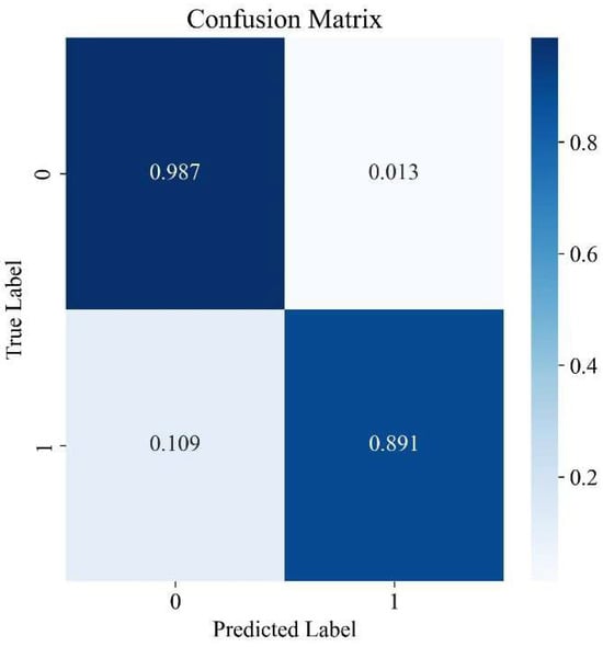 The main diagonal (0.987 and 0.891) represents the correctly classified cases: