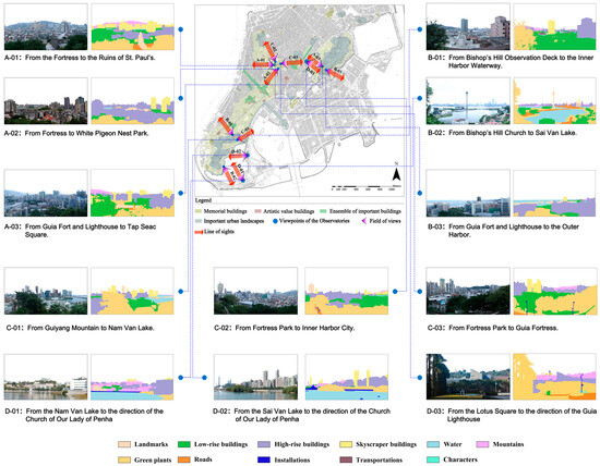 This study aims to define the landscape views of the city based on the overall urban planning of the Macau Special Administrative Region [24]. Viewing points were selected using planning vision—public vision in on-site research—and corridor distribution. Based on observation object categories, the study is divided into 4 themes, with 12 important landscape views (Table 1).
