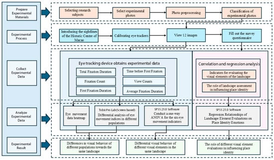 The specific practices are as follows: (1) image feature annotation: preliminary observation of 168 images, extraction of keywords of landscape elements (e.g., landmarks, vegetation, water bodies, etc.), and labeling of core features of each image. (2) Free classification: experts group images with similar features according to core landscape features. (3) Integration of grouping: the 168 images were preliminarily categorized into 40 groups by combining obviously overlapping or duplicated categories. (4) Logical correction: cross-category images were adjusted to determine the leader–follower relationship through expert team discussion, including government-defined viewpoints of the landscape, selecting 3–4 images for each viewpoint, retaining 45 landscape images by reducing them to 12 groups. (5) Representativeness verification: This ensured that the most representative image was retained for each group. In total, 12 landscape images of core viewpoints in the Historic Centre of Macao were selected, forming a structured image library that could support the oculomotor experimental study. Finally, the selected images were used for material selection and coding.