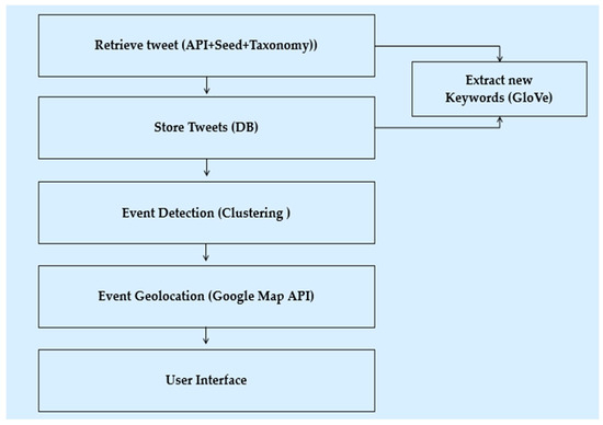 - Sani, A.M.; Moeini, A. Real-time Event Detection in Twitter: A Case Study. In Proceedings of the 2020 6th International Conference on Web Research (ICWR), Tehran, Iran, 22–23 April 2020; pp. 48–51. [Google Scholar]
