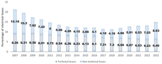 Figure 1 shows the reported percentages of electricity losses in Ecuador (a developing country located in South America) from 2007 to 2023. A decrease in the percentage of losses is observed from 21.42% reported in 2007 to 15.02% in 2023. However, an increase is noted since 2018 with a tendency towards higher levels. As observed, the problem has persisted over time, with a notable increase in NTLs from 3.9% recorded in 2015 to 8.63% in 2023.