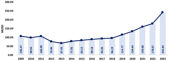 Figure 2 presents the result of this estimation based on the energy billed by electric distribution companies. It indicates that in 2023, NTLs represented USD 242.84 million for the Ecuadorian state, and this value may increase in the future.