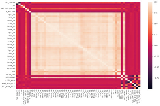 Once the variables were defined, an exploratory data analysis was conducted by using descriptive statistics and a correlation matrix. In this step, qualitative variables were encoded, and the data were normalized by using the Z-Score technique presented in Equation (