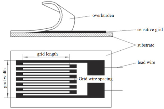 Resistance strain gauges have the advantages of a light weight, a small size, high measurement accuracy, high fatigue resistance, and good stability. Therefore, a resistance strain gauge with corresponding elastic elements is widely used in the aerospace, electric power, and civil construction engineering fields [42]. The detection technique involves measuring the strain of the strain gauge on the measured structure by changing the strain on the measured structure of the strain gauge on the structure of the measured structure, as shown in Figure 5. When applied in civil structures, the strain is generally measured by sticking to the surface of the bridge or other cement concrete with a smooth surface. The quality of the gauge paste directly affects the accuracy and reliability of the test, resulting in a high degree of empirical control and the lack of reuse [43,44]. In terms of asphalt pavements, due to the concealment of the monitoring position of the asphalt pavement structure layer, it is difficult to directly paste the strain patch. Under the harsh construction conditions and complex service environments of asphalt pavements, it is difficult for directly buried unpackaged strain patch elements to survive. On the other hand, the stiffness of a resistance strain gauge sensor is quite different from the stiffness of asphalt concrete, and the interface compatibility between the strain gauge and asphalt pavement material is poor, which affects the detection accuracy and reliability. Therefore, it is necessary to take the resistance strain gauge as the core element and to carry out research on the packaging and protection process to match the complex mechanical state of asphalt concrete.