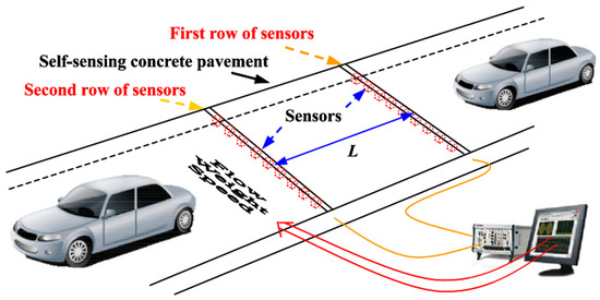 Hu et al. [127] prepared resistive strain sensors with metal-coated carbon nanofillers (CNFs)/epoxy resins. Two types of nanofillers were used, i.e., multi-walled CNTs and nickel-, copper-, and silver-coated vapor-phase-grown carbon fibers. The results show that the metal-loaded novel sensors have higher strain sensitivity, up to about 80 times that of metal foil strain gauges, compared to sensors made of nanomaterials that are not metal-loaded and compared to conventional strain gauges. Kim et al. [128] investigated the effects of MWCNT conductive fillers on the electrical conductivity and dielectric and piezoelectric properties of ceramic–epoxy nanocomposite films. Their study was based on the permeation theory, whereby CNTs act as a conductive bridge between piezoelectric ceramic particles, and a small amount of CNTs dispersed in the nanocomposite film can significantly improve the dielectric and piezoelectric properties of the film, e.g., the piezoelectric coefficient of the ceramic–epoxy nanocomposite film with the addition of 0.07 wt% of CNTs was 2.5 times higher than that of the original composite film. Liang et al. [129] designed an integrated system for road traffic information sensing, monitoring, and energy harvesting with the PVDF/PZT/CNTS piezoelectric sensor, which was successfully applied to a real highway (Jinan-Weifang Expressway, China). Precise control and loading tests of the vehicle’s front and rear axle weights were achieved at the design speeds of 30 km/h and 60 km/h and with rear axle weights of the test vehicle of 5 t (0.35 MPa), 10 t (0.7 MPa), and 15 t (1.05 MPa).