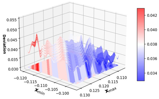 Equation (5) or Equation (4) is a multi-variable optimization problem. We perform 8-bit linear quantization on a convolution kernel in MobileNetV2 to obtain the numerical relationship between the clipping thresholds and the quantization deviation, as shown in Figure 2. It is a non-convex surface with many local optima, and the global minimum of the surface is expected to be found. Gradient-based optimization methods encounter difficulties in obtaining gradients (due to quantization truncation and rounding) and suffer from the problem of numerous local optima in multivariate optimization. Linear search is a solution (shown in Figure 3a), but it is challenging to determine the appropriate search range and step size, which may result in the global optimum not being within the set interval.
