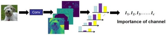 From the channel perspective, we can regard activation as the feature map extracted by c convolution kernels, as shown in Figure 4, where c represents the number of channels of activation, is the height of the activation, and means the activation’s width. Although the input images are different, the feature maps extracted by the same convolution kernel are similar. For example, zero feature maps appear in the same channel. According to Shannon’s theorem, the amount of information contained in data is proportional to its information entropy.