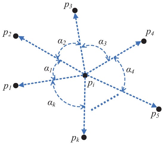 The angle α j is defined as the angle formed at the vertex of the data point p i between the edge connecting p i to the j-th neighbor p j and the edge connecting p i to the subsequent neighbor p j + 1 in the clockwise direction.