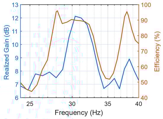 The antenna configurations can vary from single-element designs to complex multi-element arrays. The proposed design, measuring 27 × 33 mm2, is larger than certain single-element antennas, like those presented in [32], which measure as small as 4.62 × 4.49 mm2. The physical dimensions are pivotal, as they influence the antenna’s performance, particularly the gain and efficiency.