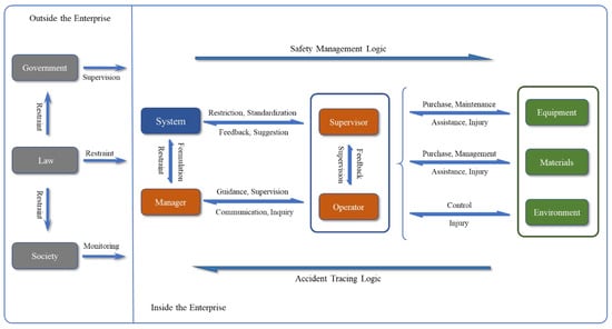 The safety management system is developed by managers in accordance with laws, industry operating procedures, and the specific needs of the enterprise, serving as the foundation for safety management activities within the enterprise. This system directly impacts the human factors by guiding, constraining, and standardizing supervisory and enforcement behaviors. Personnel manage hazards present in the production process by adhering to established regulations, procedures, and operating standards, thereby ensuring their own safety.