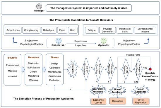 Accident causation tracing and the formulation of control measures are typical application scenarios for accident causation models. In this study, we comprehensively review the relationships among the factors that may be involved in the evolution of production accidents, clarifying the core role of personnel as the only factor with subjective initiative in the accident evolution process. We use the failure modes of personnel in controlling accident hazards and subsequent response behaviors as the basis for tracing the genesis and development of accidents. This approach effectively distinguishes between the unsafe behaviors of individuals and unsafe conditions in accident causation analysis. Prior to the initiation of an accident, the emphasis is primarily on the unsafe conditions associated with various factors, whereas after the initiation, attention shifts to the unsafe behaviors of individuals [28]. This model effectively resolves issues related to incomplete element analysis and the unclear distinctions between unsafe conditions and unsafe behaviors that may arise in chain-type accident causation models, resulting in a coherent and clear analytical framework. Constructing this framework facilitates more accurate identification of potential accident risks and provides a solid foundation for formulating effective control measures.