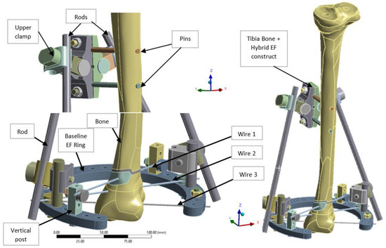 30], and adjusted to touch interface treatment. These settings were used to improve contact accuracy, given the fact that the bodies are just about to come into contact or include a very small gap. Bonded contact was considered for the other elements of the EF such as between fasteners and K-wires or ring connections.