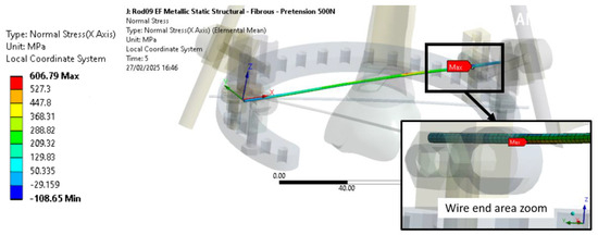 Table 3), only the case without wire tension and with 100 N of wire tension were analyzed, as the calculations for a wire pre-tension of 500 N or higher failed to converge, due to excessive deformations, which led to element distortion in the simulation.