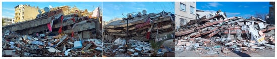 In the eleven provincial centers most affected by the Kahramanmaraş earthquakes, significant and varied structural damage occurred in different structural systems. While the dominant building stock in rural areas is masonry structures, the dominant building stock in urban areas is RC structures. In this section, the damage examples commonly observed in RC structures of the urban dominant building stock are examined in terms of civil and earthquake engineering. In particular, the damage examples in RC structures from the three provinces affected by the earthquake, Hatay, Kahramanmaraş, and Adıyaman, are taken into consideration. The causes of the damages and their schematic representations are made for better understanding. In this way, the main causes of the damages can be better revealed. Irregularities and weaknesses in RC structures played an active role in the damages. The magnitude of the earthquakes that occurred on the same day and the local ground conditions also directly affected the level of damage. As a result of earthquakes, there was great destruction in RC structures. Examples of RC structures that reached a total collapse mechanism are shown in Figure 5.