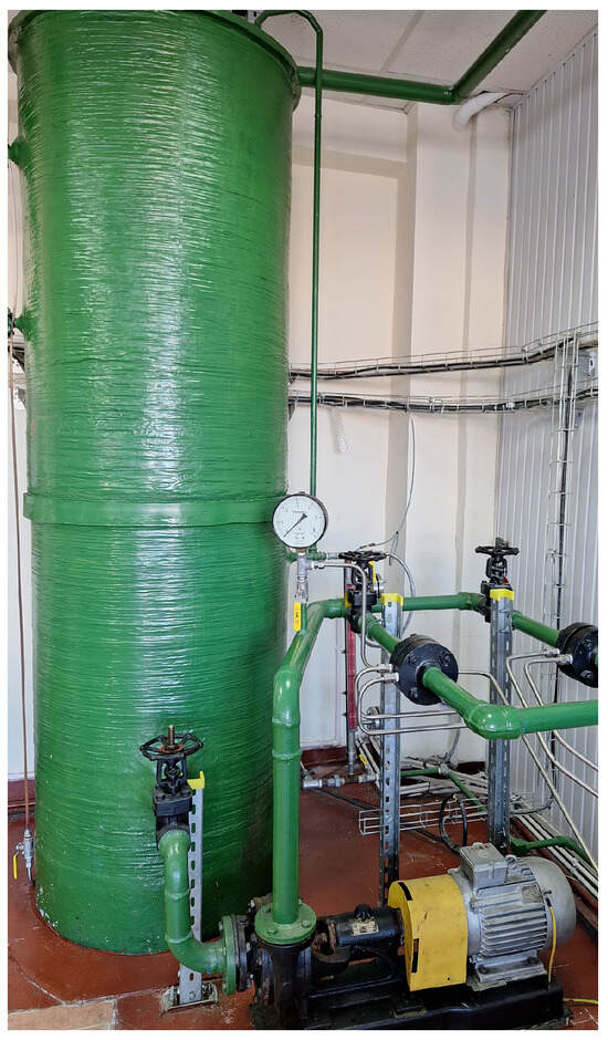 Figure 4 presents the components of the Recovery Drip System hydroponic system. This illustrates how the nutrient solution is distributed to the plants. Figure 5 shows the nutrient solution tank and the feed pump. This figure highlights the automatic nutrient feeding system. The automatic system presented in Figure 5 is an integral part of the overall system, analyzed from the perspective of the two viewpoints. Although this element is common to both infrastructures, it is considered a constitutive part of the entire system.