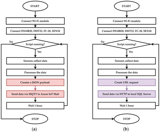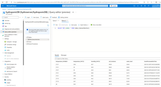 The data are collected at one-hour intervals, as the monitoring process exhibits minimal variability. The data is transmitted to a cloud database stored in Azure, which is made possible by the Wi-Fi element integrated into the M5Stack module.