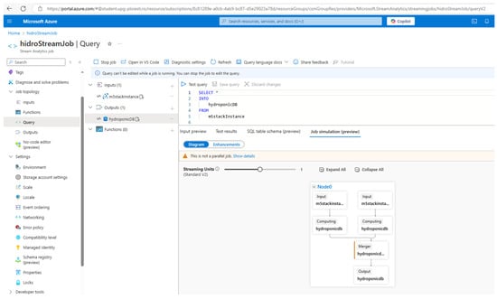 The software infrastructure, schematically presented in Figure 2, is entirely cloud-based. The study aims to highlight the possibility of building such an infrastructure in the context of technological evolution, which, from a software perspective, seeks to completely change the programming paradigm by software modularity at the cloud level. In Figure 2, the hardware elements are marked with blue, the software elements for analysis and decision-making are green, and the software elements for data are red.