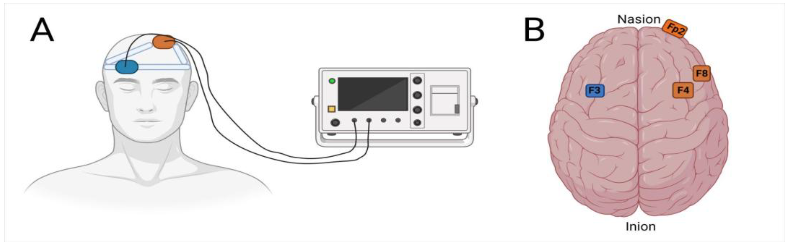 - Woodham, R.D.; Selvaraj, S.; Lajmi, N.; Hobday, H.; Sheehan, G.; Ghazi-Noori, A.R.; Lagerberg, P.J.; Rizvi, M.; Kwon, S.S.; Orhii, P.; et al. Home-based transcranial direct current stimulation treatment for major depressive disorder: A fully remote phase 2 randomized sham-controlled trial. Nat. Med. 2024, 31, 87–95. [Google Scholar] [CrossRef]