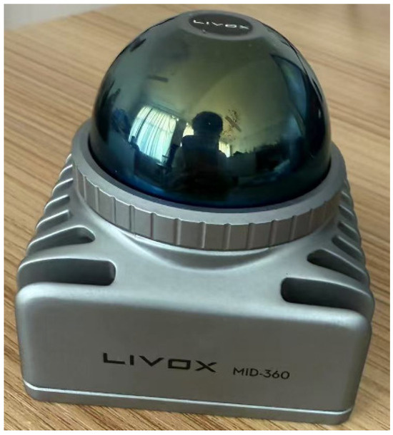 In this study, some of the point cloud data were collected using the Livox-Mid360 LiDAR (Shenzhen, China). The physical object and main performance parameters of the Livox-Mid360 LiDAR are shown in Figure 2 and Table 1.