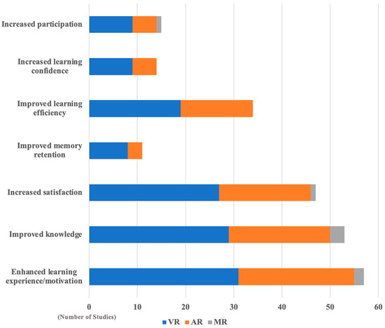 Figure 6. Learning outcomes enhanced by XR technologies.