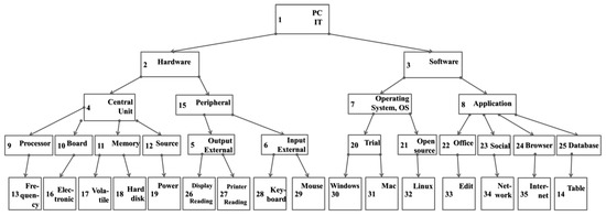 - is the bidimensional array or matrix that contains a specific configuration of a set of learning blocks. A bidimensional array is a structure formed of learning blocks that may be connected based on the four edges of a block:A matrix is obtained as a result of a genetic algorithm that will be described in the next sections. In this context, L(O) represents the number of levels within the generated ontology (O).