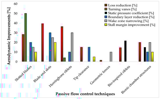 In gas turbine systems operating on the Brayton cycle, the compressor is a major consumer of power, accounting for approximately 40–50% of the total power produced by the turbine. This significant energy demand directly impacts overall efficiency and fuel consumption []. Implementing flow control methods has proven effective in enhancing compressor performance, leading to improved efficiency and fuel savings. In aviation gas turbines, techniques such as vortex generators, tip treatments and optimized blade designs help reduce compressor work input, thereby increasing thermal efficiency. Similarly, in power generation turbines, methods like lean premixed combustion and film cooling contribute to efficiency gains by optimizing airflow through the compressor and turbine stages, indirectly reducing fuel consumption.