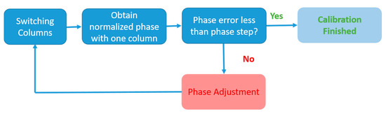 In the first iteration after N measurements, select an arbitrary column and normalize the phases with respect to the chosen column and obtain the phase difference between columns. In the second iteration, using the phase differences obtained in the iteration one, compensate the phase difference by changing the phase shifter state of the beamformer for each column to reach the same phase.