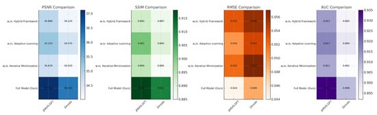 Figure 7 and Figure 8 provide visual representations of the ablation study, emphasizing the incremental improvements achieved by each module. The study underscores the complementary nature of the modules, where each component addresses distinct aspects of the learning task. The Hybrid Stress–Strain Modeling Framework enhances feature representation, Adaptive Learning with Physics-Consistency refines multi-scale feature extraction, and Iterative Error Minimization ensures structural consistency and alignment. Together, these components form a synergistic framework that significantly improves performance compared to state-of-the-art methods. The findings validate the architectural choices and highlight the robustness of the proposed approach in diverse settings.