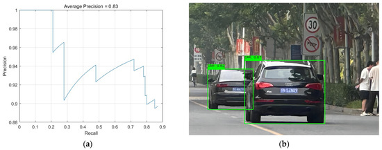 The image, regarded as a collection of pixels, can be expressed as a matrix. YOLOv8 analyzes the input image, capturing its features through feature extraction technology. After calculations, the program identifies objects and provides their locations and labels. This process is realized by the trained weights, which are the core of the algorithm. These weights form the basis for image reasoning and target identification, equivalent to the criteria and standards used in the recognition process. Figure 7a illustrates the model’s performance in target monitoring in terms of accuracy and recall at various thresholds.