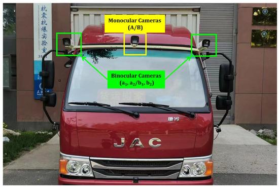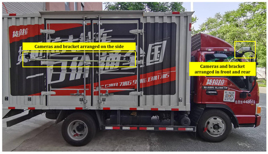 To ensure the camera’s safety during the experiment and establish a fixed distance between the binocular cameras, an adjustable bracket, specifically designed for the binocular camera and fabricated using 3D printing technology with photosensitive resin material, was created. In this test, we bolted the bracket 2 m above the ground surface to the vehicle’s body. However, in actual transportation scenarios, the bracket’s fixed position should be carefully planned based on the shape and structure of the transport vehicle to further ensure the camera’s safety during the transportation of explosives.