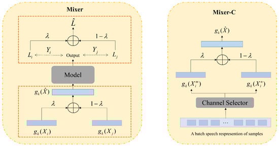 where and correspond to speech samples from different channels that share the same label . Due to the two samples sharing the same label, Mixer-C does not require mixing the loss. Mixer-C can enhance the model’s understanding of information from different channels. Compared to Mixer, this approach does not require any additional computation of the loss function, thus improving computational efficiency.