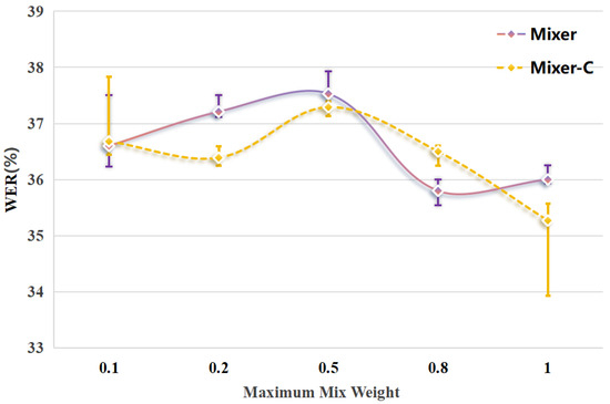 WER (%) of Mixer/Mixer-C under different hyperparameter .