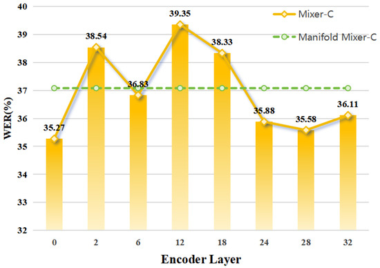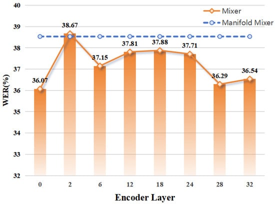 For Mixer, it can be observed that when the maximum mixing value is 0.1, the model’s performance is better. As the maximum mixing value increases, Mixer’s performance begins to decline, reaching its lowest point at 0.5. When the ratio exceeds 0.5, the performance starts to rise, and the WER reaches its minimum value when the maximum mixing value of WER is 1. We have analyzed the reasons behind this phenomenon. Since , a decrease in leads to an increase in , and transitions from resembling more to resembling more. Consequently, when the maximum mixing value approaches 0 or 1, the change in relative to the input is actually smaller. However, when the maximum mixing value is close to 0.5, the change in is significant, which may introduce excessive fluctuations and affect the performance. Finally, we can observe similar experimental conclusions for Mixer-C, but it can be seen that the performance of Mixer-C is overall better than that of Mixer. And the performance is superior to the maximum mixing weight until 1. This indicates that enhancing channel information is very important for Whisper-Large-v3.