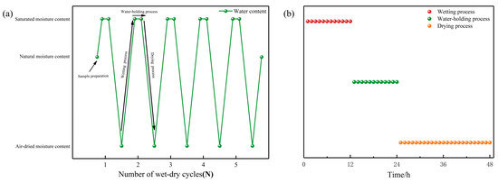(a) Water content of sample in wet–dry cycles; (b) time of wet–dry cycles.