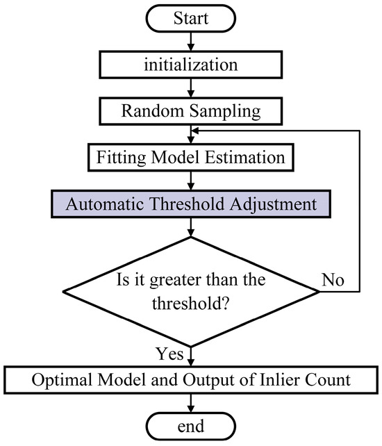 The RANSAC algorithm’s performance in research and use is vulnerable to outliers and noise interference found in high-resolution datasets. Furthermore, the fixed threshold mechanism has inherent shortcomings, including a high rate of misclassification and a heavy reliance on empirical data. In order to overcome these problems, this study suggests an adaptive threshold adjustment technique based on statistical features. By using dynamic threshold settings, the possibility of incorrectly classifying inliers is decreased, improving the model’s resilience to noise. The RANSAC optimization algorithm has a threshold range of 10 to 100, a threshold increment of 5, a threshold initialization of 30, and a total of 100 iterations.