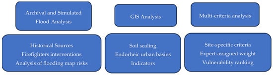 The initial phase of the city analysis involved gathering archival data on past flooding and extreme hydrological events. Access to a wealth of archival data and scientific sources provided ample information on historical floods resulting from intense rainfall, snowmelt, or riverbank overflow. Given the cyclical nature of certain hydrological events that recur every few decades or centuries and short memory of residents, this data shed sometimes new light on flood-prone areas and the severity of flooding. Furthermore, current data on street and building flooding were collected, drawing from interventions by fire-fighting services. This dataset included the date of the event along with precise coordinates. The effectiveness of this initial phase of analysis may vary, as the availability of archival data on historical flooding and precise coordinates of local flood events is often limited or inconsistent.