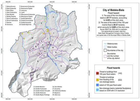 Flooding threats in Bielsko-Biała City include risks from non-drained urban basins as well as overflow from riverbanks.