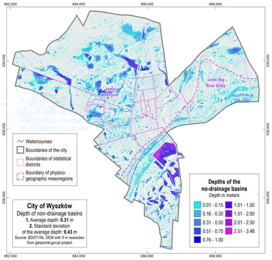 The localisation and depth analysis of potential non-drained urban basins in Wyszków City.