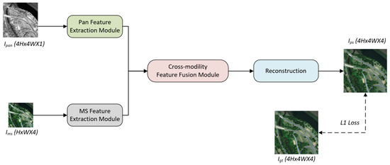 In the previous subsection, we separately extracted the features from the PAN and MS images and inputted them into the CMFFM. This section presents the structure of the CMFFM as illustrated in