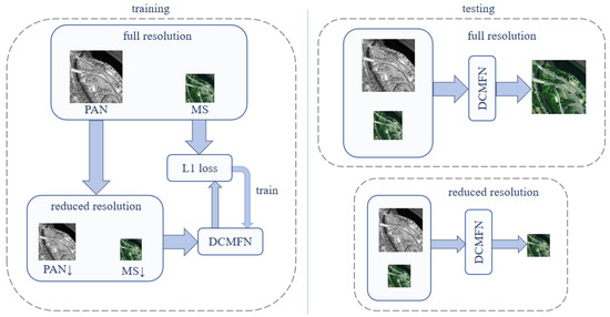 Currently, most pansharpening algorithms that utilize supervised deep learning generate datasets following this methodology. On the one hand, they employ reference image quality evaluation metrics to assess fusion results at a reduced resolution. On the other hand, non-reference image quality metrics are used to evaluate fusion results at full resolution. By considering experimental results at not only full resolution (FR) but also reduced resolution (RR), the quality of fusion images can be assessed more comprehensively.