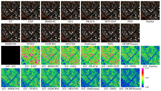 10]. This methodology generates a dataset encompassing input MS images, PAN images, and HRMS images. The initial PAN and MS images are first processed into blurred versions, employing a modulation transfer function (MTF) kernel for this purpose. After the initial step, the PAN and MS images undergo a reduction in resolution by dividing their pixel dimensions by four. Meanwhile, the original MS image is used as the GT for supervised learning.