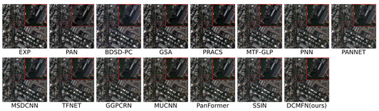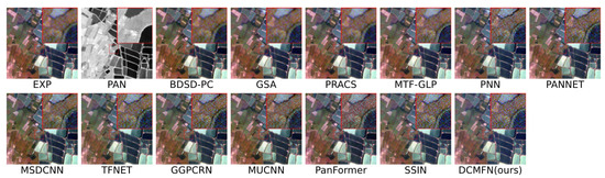 22]. To address the above challenges, we propose DCMFN. The network aims to build on the structure of the PanFormer network to further enhance and integrate the correlation and complementary information between PAN and MS images. As a result, our DCMFN produces pansharpened images with less spectral distortion and loss of detail.